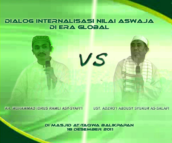 PCNU Balikpapan menggelar Dialog Terbuka Antara KH Muhammad Idrus Ramli asy-Syafi’i dengan Ustadz Adzro’i Abdusysyukur as-Salafi seorang tokoh Wahabi. Dialog yang bertema “Internalisasi Nilai Ahlussunnah Wal Jama’ah (ASWAJA) di Era Global” ini dikemas sekaligus dengan acara bedah buku “Kiai NU atau Wahabi Yang Sesat Tanpa Sedar? Jawaban Terhadap Buku-Buku Mahrus Ali”,